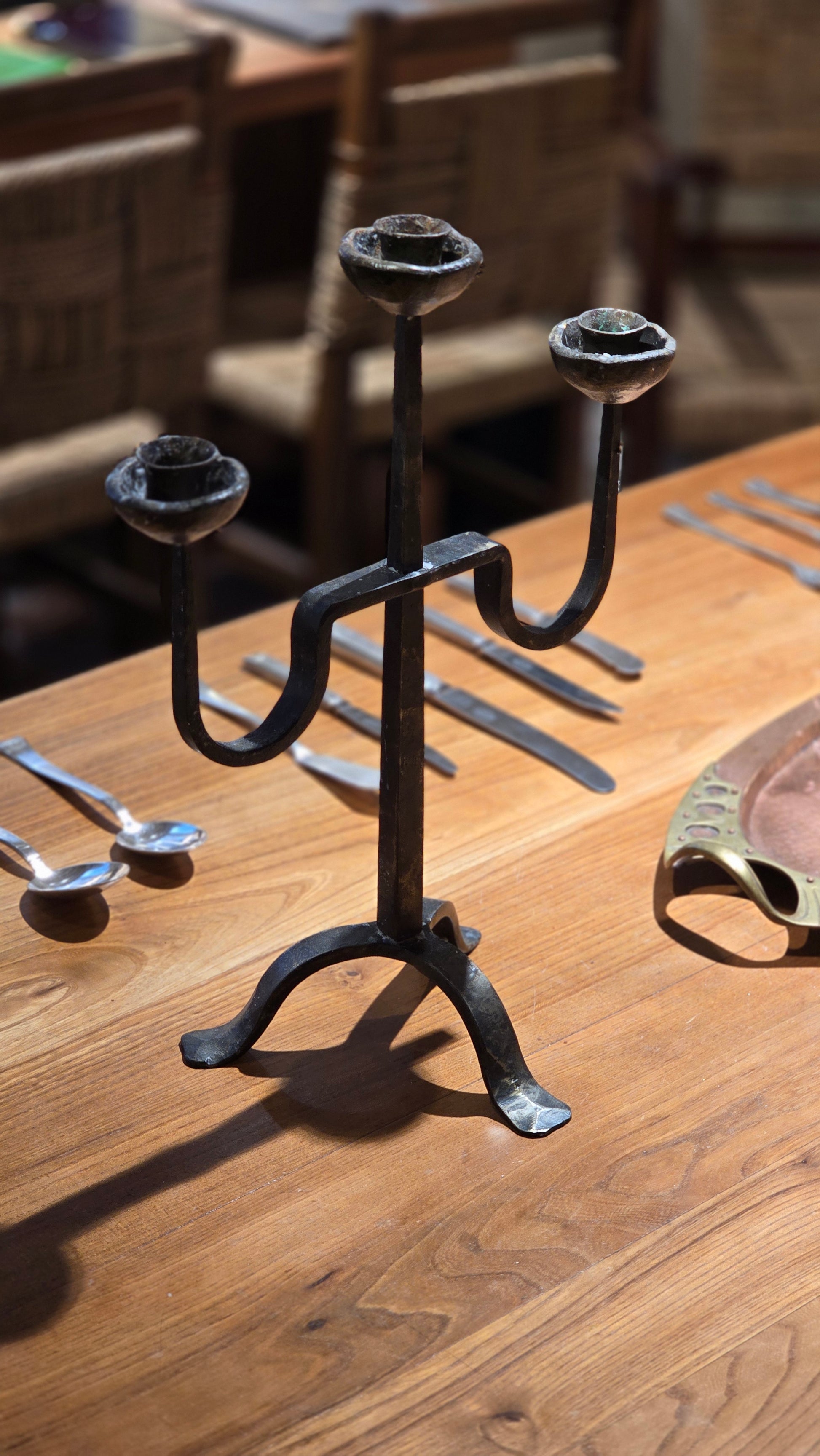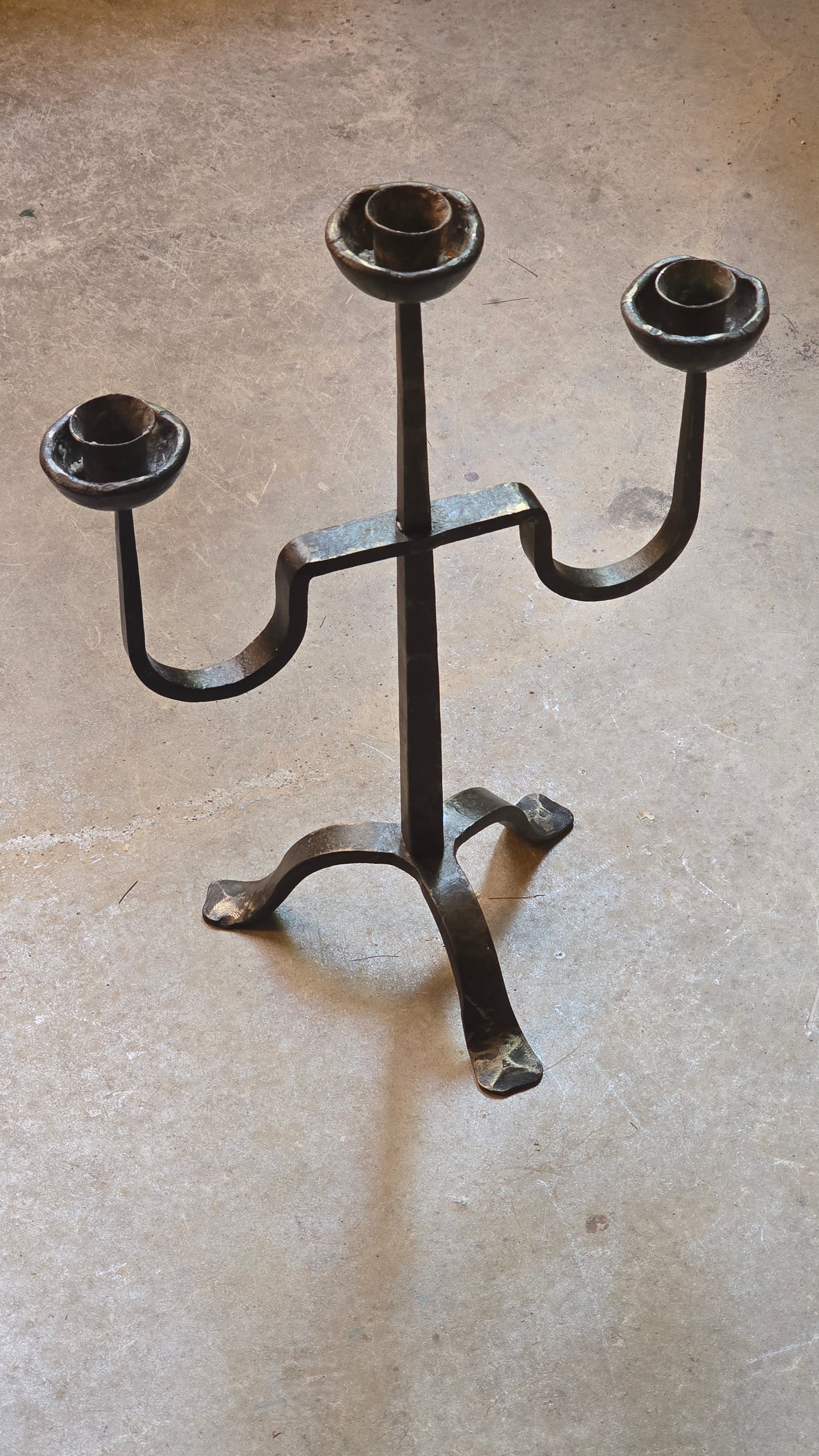 Rare candélabre en bronze à trois branches